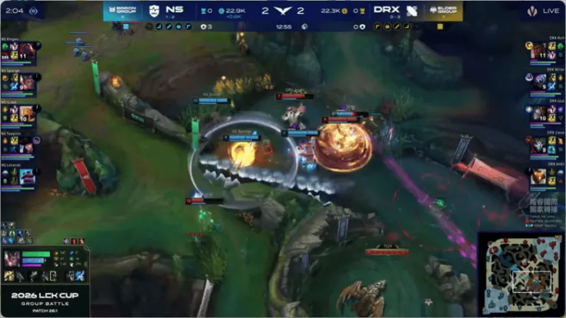 12分钟,两边河道混战,DRX打出2换4大获全胜